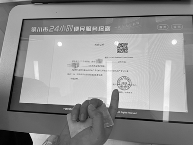 银川市办事群众通过24小时便民服务终端机自助打印无房证明。(资料照片)