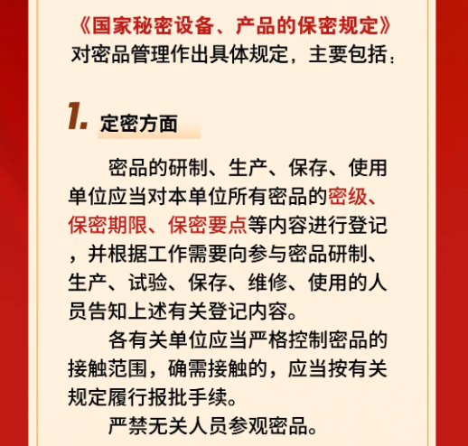 全国保密宣传教育月|关于密品保密管理的规定