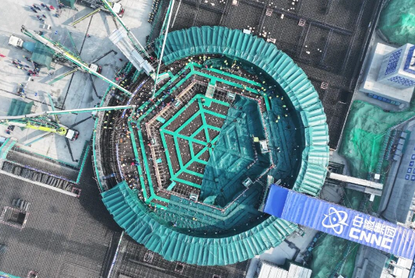 2026年1月16日,位于江苏省连云港市的江苏徐圩核能供热发电厂1号机组核岛开始混凝土浇筑,项目进入主体工程建设阶段。这是“十五五”开局之年我国开工建设的首台核电机组。图/新华社记者 毛俊 摄