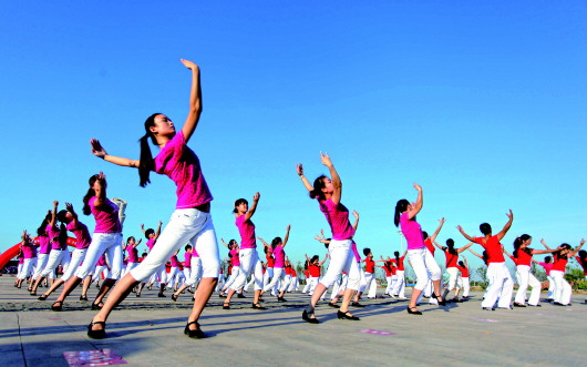 江西东乡广场舞爱好者在东乡体育馆广场跳广场舞。 新华社发(何江华摄)