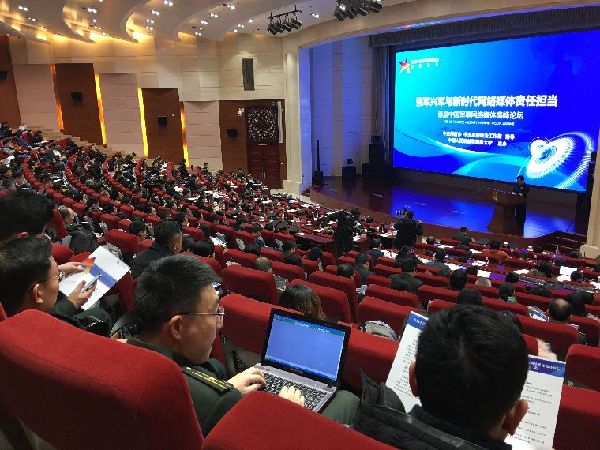 在全党全国全军阔步迈进新时代、同心共筑中国梦之际,由中央网络安全和信息化领导小组办公室、中央军委政治工作部指导,国防大学主办的首届中国军事网络媒体高峰论坛于11月24日上午开幕。260余名嘉宾齐聚一堂,共商网络发展大计、共绘强军兴军愿景。