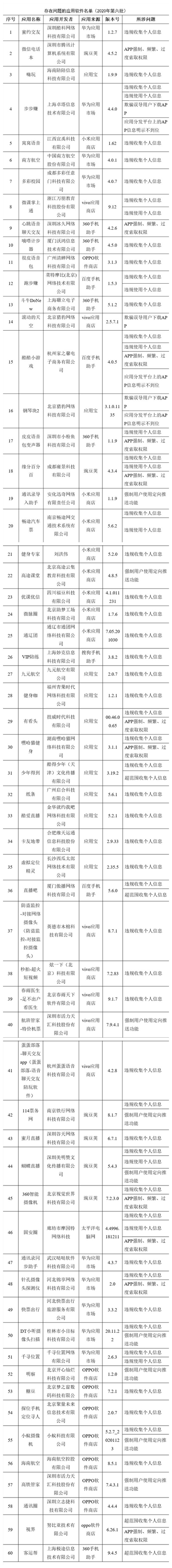 人民网北京12月3日电 (申佳平)记者今日从工业和信息化部官网获悉,依据《网络安全法》《电信条例》《电信和互联网用户个人信息保护规定》等法律法规,按照《关于开展纵深推进APP侵害用户权益专项整治行动的通知》工作部署,工信部近期组织第三方检测机构对手机应用软件进行检查,督促存在问题的企业进行整改。截至目前,尚有60款APP未完成整改,包括“微信电话本”“秒拍”“海南航空”等。