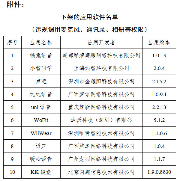人民网北京3月3日电 (赵超)工业和信息化部官网今天发布通报,声吧、纯纯语音、语声等10款APP在限定期限内未按照要求完成整改,即日起在相关应用商店进行下架处理。