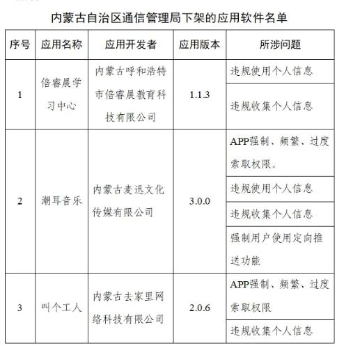 通报称,2021年4月23日,工信部向社会通报了93家存在侵害用户权益行为APP企业的名单。截至目前,经第三方检测机构核查复检,尚有39款APP未按照工信部要求完成整改。各通信管理局按工信部APP整治行动部署,积极开展手机应用软件监督检查,此次内蒙古、安徽、广东、四川、浙江省(自治区)通信管理局检查发现共有46款APP仍未完成整改。