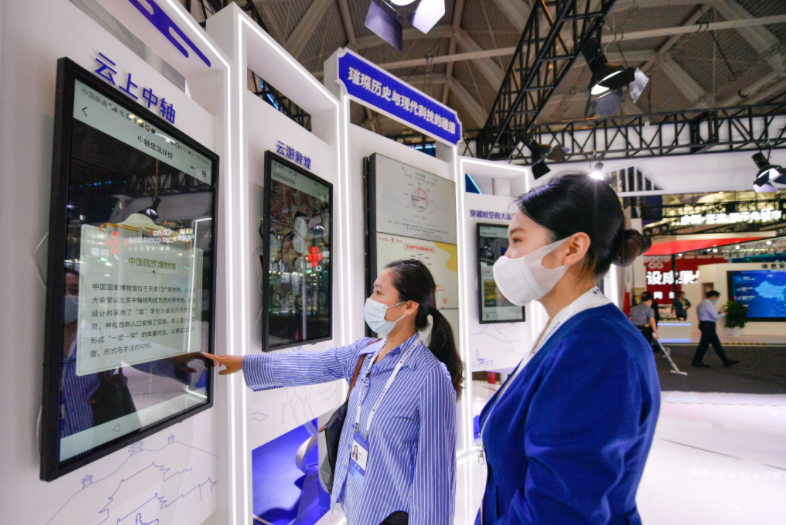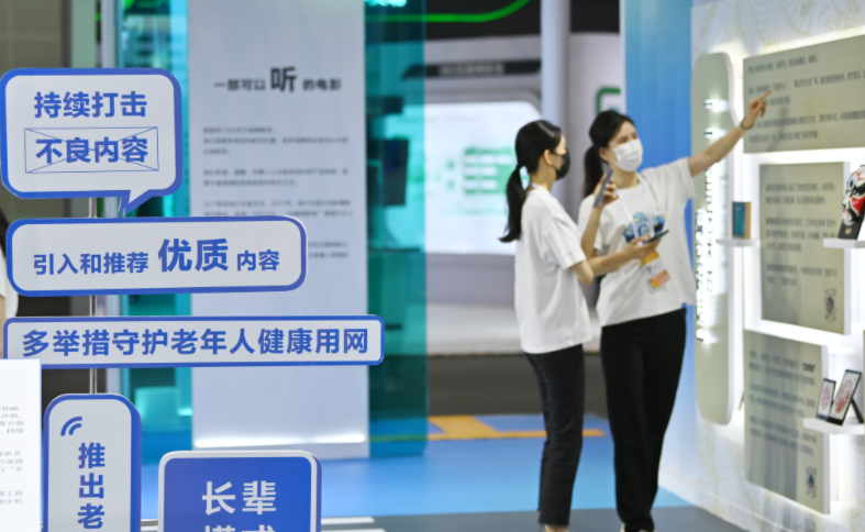 8月28日,在国家会展中心(天津),参会者在2022年中国网络文明大会现场参观展览。新华社记者李然摄