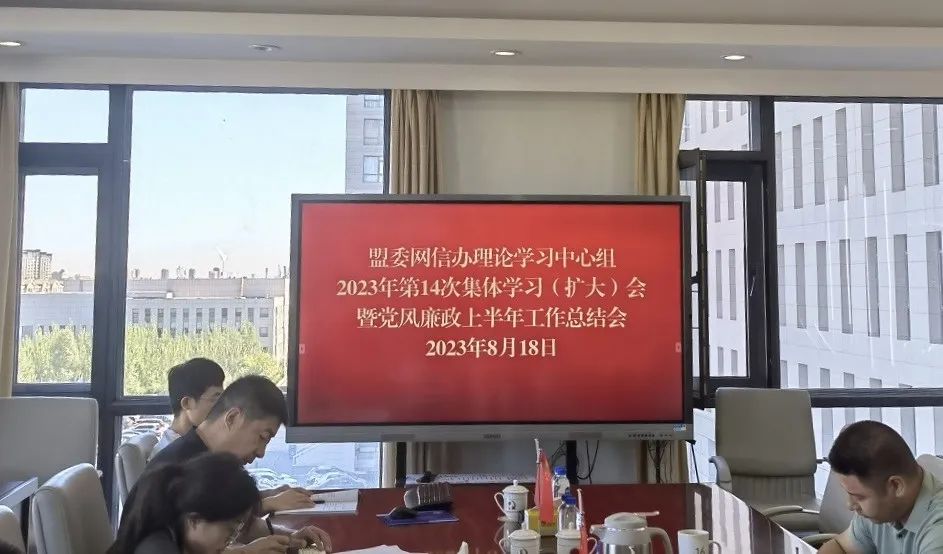 8月18日上午,锡林郭勒盟委网信办召开理论学习中心组2023年第14次集体学习(扩大)会暨党风廉政上半年工作总结会,会议通报2023年上半年党风廉政建设工作情况,安排部署岗位权力廉洁风险防控及下半年党风廉政建设工作。锡林郭勒盟委网信办主任侯昆主持会议并讲话,在家全体党员干部参会。