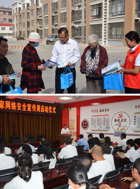 9月11日上午,2023年国家网络安全宣传周阿拉善盟启动仪式在王府街道腾格里社区启动,启动仪式由阿拉善盟委网信办、阿左旗旗委网信办牵头,联合阿拉善盟委宣传部、盟教体局、公安局、工信局、人行阿盟分行等多部门联合主办。各旗(区)同步启动本地区国家网络安全宣传周活动。