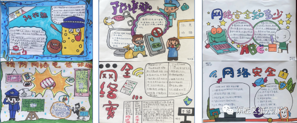 组织学生利用班队会时间观看完网络安全宣传视频后,低年级孩子们利用课余时间制作了网络安全宣传小报。通过小报的质量可以看出他们是真的了解到了网络安全以及预防电信诈骗的重要性,每张小报都是他们内心真实想法的表达。