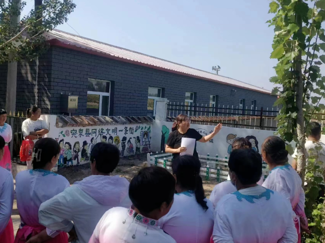 今年8月,为了筹备网络安全宣传周的线下宣传,突泉县继续绘制“网络文明一条街”,围绕网络安全等内容,邀请志愿者共同绘制文化墙。志愿者在参与的过程中,加深了对网络安全的认知,不仅成为文化墙的绘制者,更成了网络安全的宣传员和参与者。在志愿者的努力下,“突泉县网络文明一条街”已集纳绘画作品282幅,一幅幅生动画作,将网络安全常识用“看得见”的宣传方式送到村民家门口,走进了农村。宣传周期间,太平乡组织村民到“网络文明一条街”参观,并向大家讲解网络诈骗、个人信息保护等常识,让村民网络安全意识大幅提升。