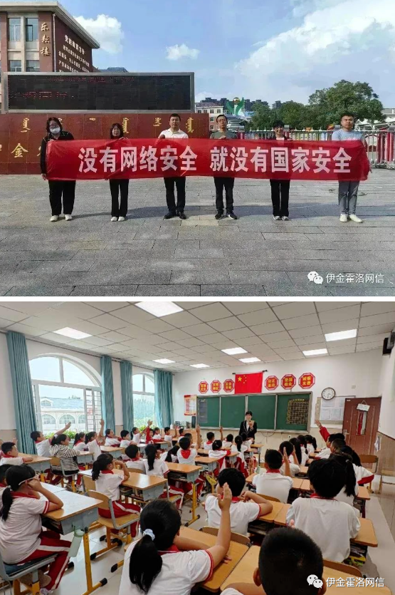 宣传组走进伊金霍洛旗第二小学,首先看到的是学校大门口“网络安全为人民网络安全靠人民”的宣传标语,校园展示牌张贴的宣传海报满满当当,老师们通过班会课为学生科普网络安全相关知识,同时倡导学生办手抄报,创作网络安全小作文,提升自己的网络安全意识和防护技能。教育全体师生自觉抵制网络不文明行为,绿色上网、安全上网,净化校园环境,谨防网络诈骗。
