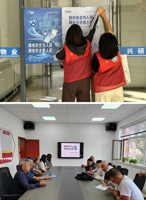 建设街道妇联通过张贴宣传海报,组织居民观看视频的形式,宣传网络安全和个人信息安全防护知识。
