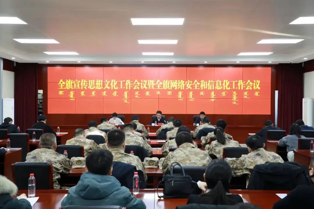 会议强调,全旗上下要精准聚焦理论武装,把习近平文化思想作为理论学习的重要内容,引导广大党员干部完整准确领会丰富内涵和实践要求,牢牢把握宣传思想文化工作的正确方向。要全面提高宣传思想文化工作水平,把铸牢中华民族共同体意识贯穿各项工作始终。要强化宣传思想文化工作助力经济社会发展的作用,把阿旗大抓发展、加快发展的形象树起来,提振全旗上下抓发展的信心。要精心打造外宣产品,将阿旗的农牧业规模、游牧文化和矿产资源等优势推介出去,吸引更多企业来阿旗投资兴业。要深入推进北疆文化建设,系统梳理传统文化资源,推动游牧文化、蒙古汗廷音乐等文化遗产充分融入北疆文化品牌建设。要着力培育和践行社会主义核心价值观,全面深化精神文明建设,切实提升群众文明素质和城市文明程度。要强化网络安全管理,严格落实网络安全工作责任制,加强网络舆情管控,做好监测收集、分析研判。要推动数字经济发展,加快推进政务运行“一网协同”、政务服务“一网通办”,让更多群众享受到数字红利和便利。