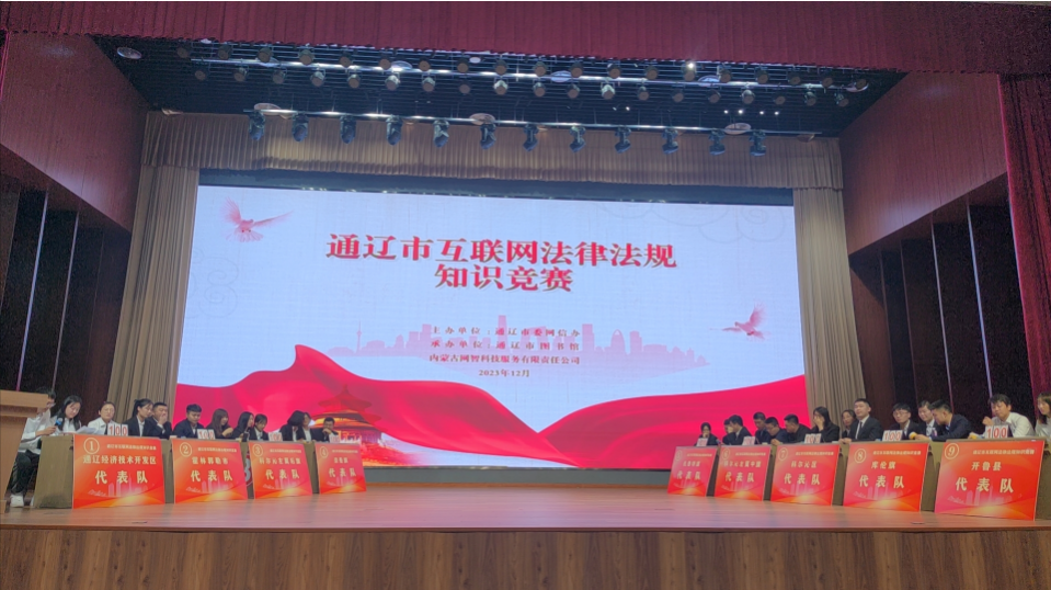 为深入学习宣传贯彻习近平法治思想、习近平总书记关于网络强国的重要思想,不断提升网络执法人员的法治意识和法治思维,2023年12月28日,通辽市委网信办举办全市首届互联网法律法规知识竞赛。