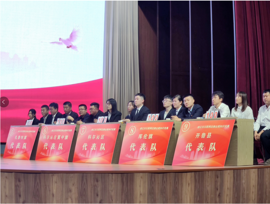 本次竞赛共有9支代表队、27名选手参加,分为个人必答题、抢答题和风险题3个环节,内容涵盖互联网领域的法律、法规、规范性文件等内容,经过多轮精彩比拼,最终扎鲁特旗代表队获得一等奖。