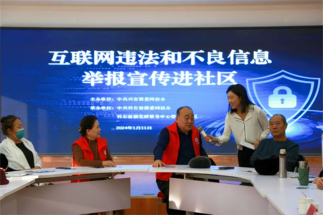 为提升广大网民辨别互联网违法和不良信息的能力,倡导广大网民文明上网,共同抵制网络不良信息。由兴安盟委网信办和六个旗县市委网信办共同举办,以“依法治网同心同行”为主题的兴安盟互联网违法和不良信息举报宣传“七进”(进社区、进企业、进农村、进家庭、进机关、进军营、进校园)活动,于1月11日上午在兴安盟六个旗市统一启动。兴安盟旗两级网信部门用群众通俗易懂、喜闻乐见的形式宣传普及互联网法律法规和网络安全知识。