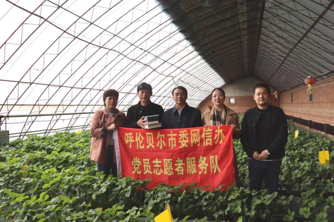 集中宣讲结束后,呼伦贝尔市委网信办一行赴扎罗木得村呼伦贝尔市鑫众成农民专业合作社,实地参观育苗室、温室大棚,并在田间地头向合作社负责人宣讲党史知识,同时为其送去党史学习教育相关书籍。