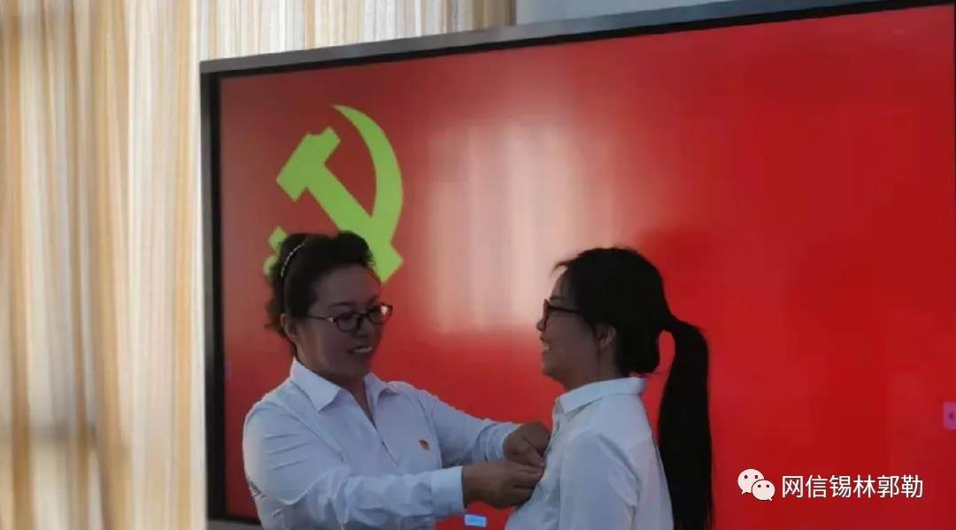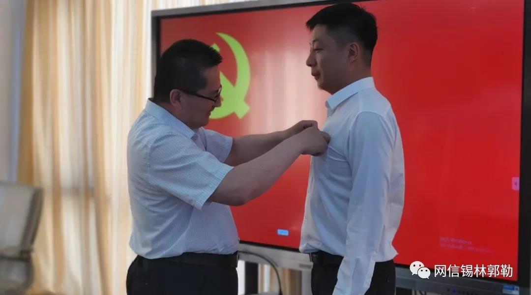 专题党课结束后,侯昆同志带领全体党员重温了入党誓词,有关领导为2021年度新发展党员佩戴党徽。