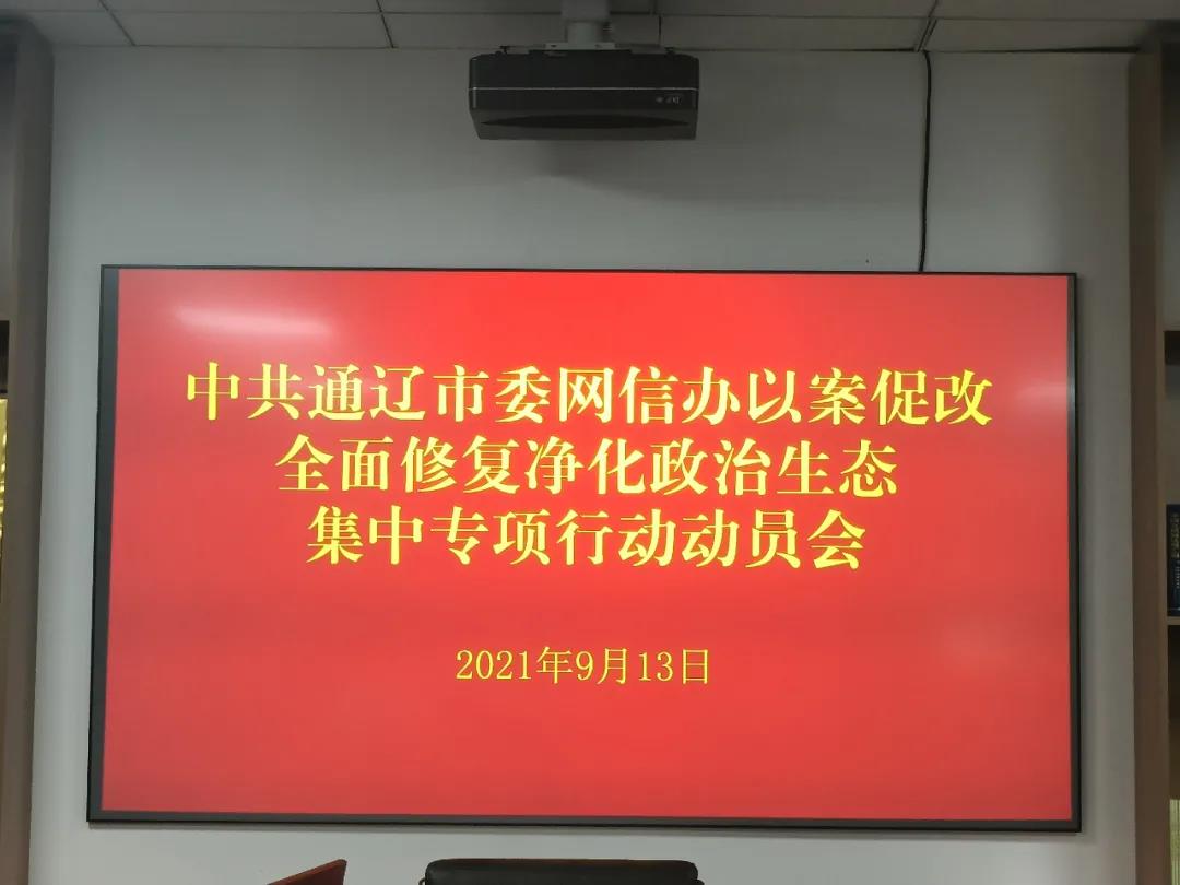 9月13日,通辽市委网信办召开以案促改全面修复净化政治生态集中专项行动动员会,全体干部职工集中观看了警示教育片,宣读了《通辽市委网信办深入开展以案促改全面修复净化政治生态集中专项行动工作方案》。通辽市委网信办主任、通辽市互联网信息办公室主任、通辽市委宣传部部务会委员高常亮作动员讲话,派驻纪检组副组长王刚出席会议,通辽市委网信办全体干部职工参加会议。