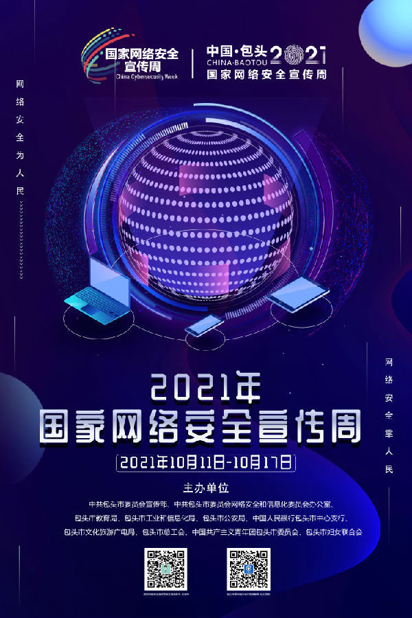 2021年包头市“国家网络安全宣传周”将于2021年10月11日至17日在全市范围内统一开展。本次网络安全宣传周的主题为“网络安全为人民,网络安全靠人民”,网络安全关乎每位网民切身利益,维护网络安全需要广大网民共同参与。