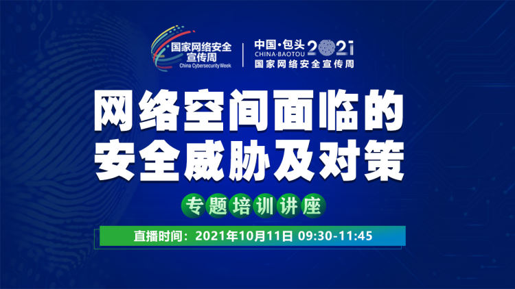 在宣传周期间,包头市委网信办将于2021年10月11日上午09:30在包头医学院举办“网络安全宣传周”开幕式暨专题培训讲座,特邀请中科院信息工程研究所第六研究室主任刘宝旭老师莅临包头医学院学术报告厅进行线下专题培训讲座。本次讲座采用线下授课结合线上直播的形式,发动全民广泛参与网络安全宣传教育活动,普及网络安全知识,提升网络安全防护技能,全面营造全社会共筑网络安全防线的浓厚氛围。