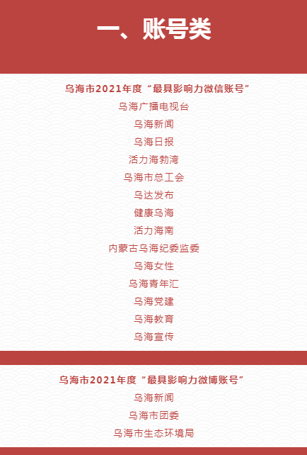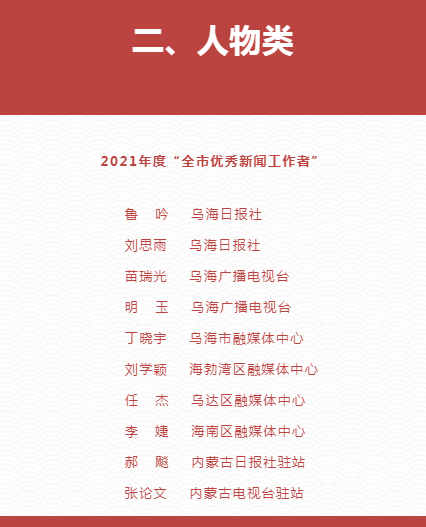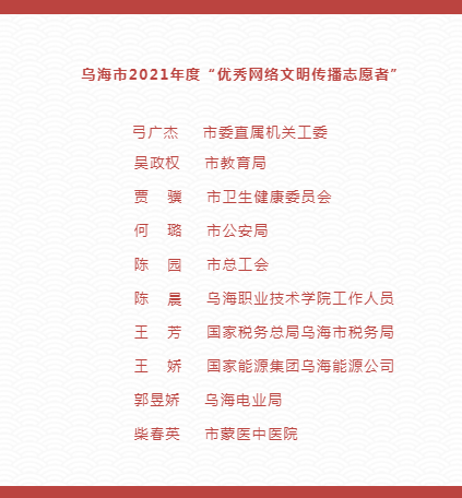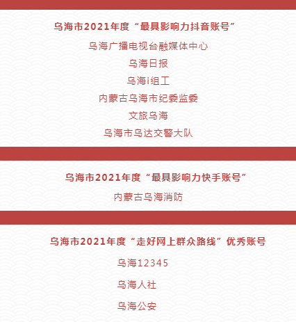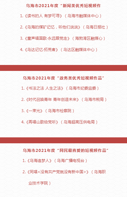 会上发布了《2021年乌海新媒体传播数据报告》,公布了2021年度全市“优秀新闻工作者”“优秀网络文明传播志愿者”“乌海好网民”及“最具影响力的新媒体账号”“优秀短视频作品”“网友最喜爱的短视频作品”,播放了新闻单位精心策划拍摄的情景剧、短视频等。