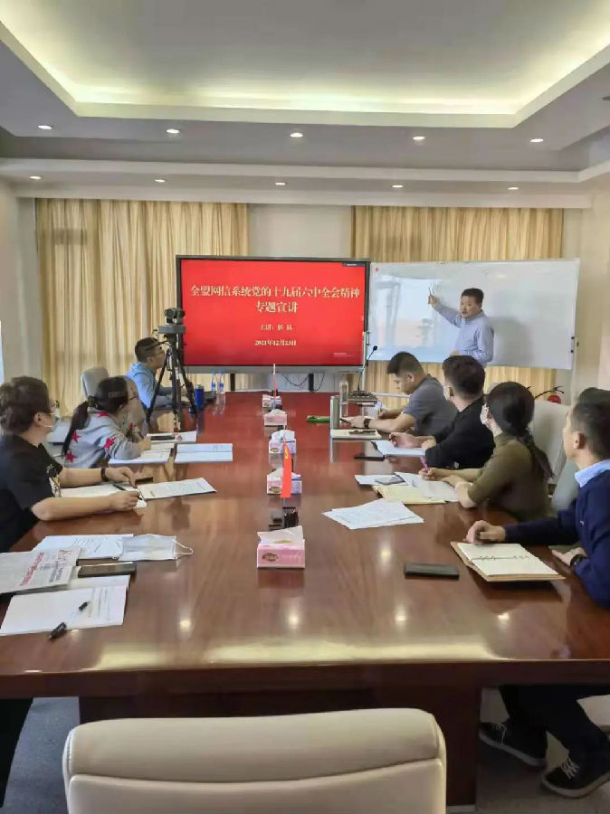 12月23日,锡林郭勒盟委网信办召开全盟网信系统党的十九届六中全会精神宣讲活动,锡林郭勒盟委网信办主任侯昆开展宣讲,锡林郭勒盟委网信办机关全体干部参加活动,全盟各旗县市(区)网信办工作人员通过“网信云讲堂”视频会议系统同步在线学习。