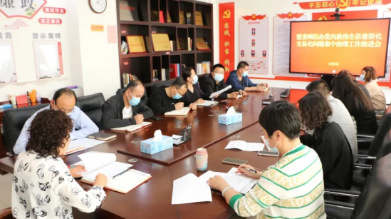 5月5日,阿拉善盟委网信办召开集中治理党内政治生活庸俗化交易化问题工作推进会,班子成员及全体党员干部参加会议,办主要负责同志主持会议,并对集中治理党内政治生活庸俗化交易化问题工作进行任务再明确、责任再压实。