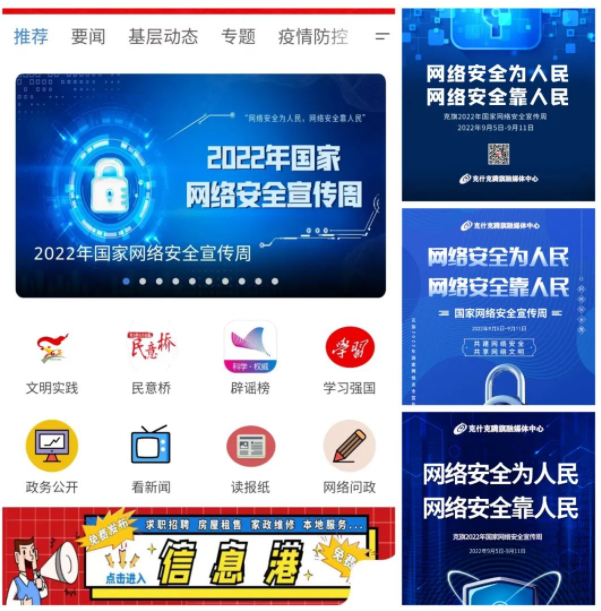 克什克腾旗以“网络安全为人民网络安全靠人民”为主题,多载体多举措营造“2022年国家网络安全宣传周”浓厚宣传氛围。通过在醒目位置悬挂宣传条幅、张贴宣传海报、摆放宣传展架、LED显示屏滚动播放宣传标语、发放宣传折页及宣传单,集中学习《网络安全法》,在新闻客户端开设专栏、制作新媒体宣传产品等通俗易懂、喜闻乐见的形式及载体,宣传网络安全理念、普及网络安全知识、推广网络安全技能,有力推动全社会网络安全意识和防护技能的提升。