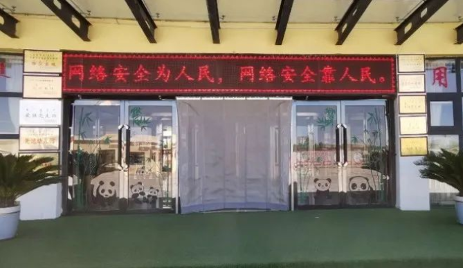 各中小学、幼儿园利用LED电子显示屏广泛投放“网络安全为人民,网络安全靠人民”、“文明上网由我先行,携手共书网上明文”、“手拉手保护个人信息,心连心建设智慧校园”、“共建网络安全,共享网络文明”等标语。