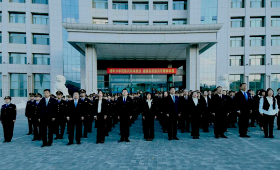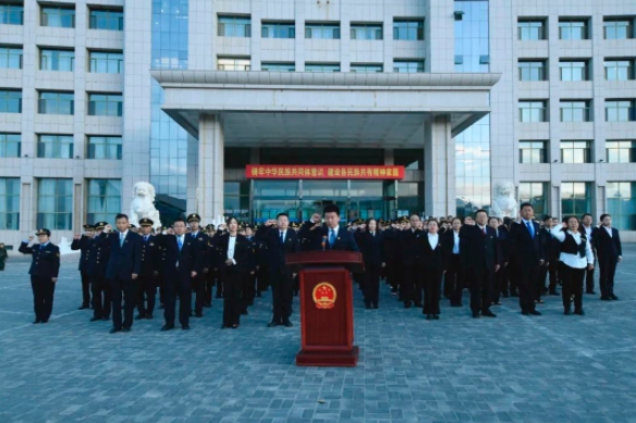 10月1日上午7时,阿拉善盟委网信办、盟市场监管局、盟政务服务局以及阿左旗市场监管局隆重举行升国旗仪式和宪法宣誓仪式,热烈庆祝中华人民共和国成立73周年,喜迎党的二十大胜利召开。