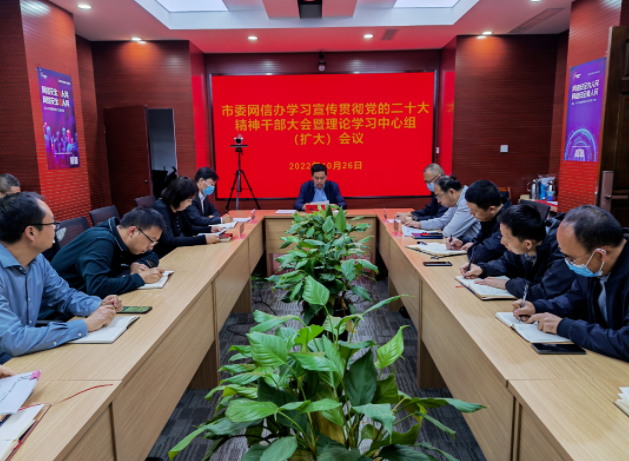 10月26日,鄂尔多斯市委网信办召开学习宣传贯彻党的二十大精神干部大会暨理论学习中心组(扩大)会议,学习宣传贯彻党的二十大精神,传达学习全区学习贯彻中国共产党第二十次全国代表大会精神干部大会主要内容,全文学习市委书记李理在“全市学习贯彻中国共产党第二十次全国代表大会精神干部大会”上的讲话,安排部署了市委网信办学习宣传贯彻工作。市委网信办主任、市互联网信息办公室主任尚二平主持会议并讲话,办机关全体党员领导干部参加了会议。
