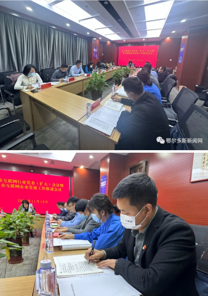 11月10日,鄂尔多斯市互联网行业党委(扩大)会议暨互联网企业党建工作推进会议召开。会议学习传达了党的二十大精神及自治区党委组织部、网信办相关文件精神,听取了部分旗区、有关园区和互联网企业党建工作开展情况,审议通过了《中共鄂尔多斯市互联网行业委员会派驻互联网企业党建工作指导员管理办法》。鄂尔多斯市互联网行业党委委员、有关旗区网络安全应急指挥中心负责人、有关园区党群工作部负责人以及部分互联网企业负责人参加会议。