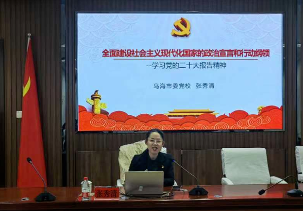 为深入学习宣传贯彻党的二十大精神,2022年12月15日,市委网信办、市区域经济合作局联合举办“学习宣传贯彻党的二十大精神”专题培训会,邀请乌海市委党校副校长张秀清同志作专题培训。