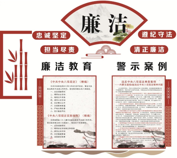 三是建设廉政阵地,打造清正廉洁机关。今年以来,阿拉善盟委网信办突出廉洁教育和警示案例等板块设计,打造廉政文化阵地,常态化更新习近平总书记关于新时代廉洁文化的论述、古今廉洁语录和违反中央八项规定典型案例等内容,编辑制作《一封廉洁家书》等廉政文化音视频作品,架起家庭党风廉政建设的桥梁,把廉政教育延伸到党员干部的家庭中和“八小时”之外,使全体党员干部成为清廉家庭的参与者和守护者,筑牢家庭廉政防线。