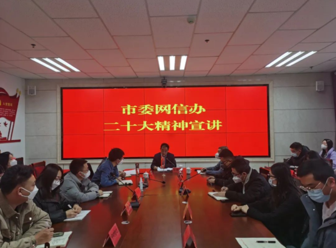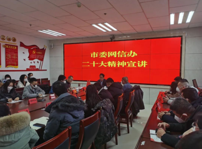 会议要求,要把学习贯彻党的二十大精神作为最高政治责任,最大政治忠诚,原原本本学、反反复复学,一字一句学,深入细致学,深刻领会报告的精神实质,营造浓厚的学习氛围。要以二十大报告精神作为行动指南,加大大数据产业招商力度,不断完善产业链条,推动我市数字经济高质量发展。要加大网络安全宣传力度和深度,全面提高市民网络安全意识,努力营造健康、安全、文明、和谐的网络环境,为建设网络强国贡献力量。