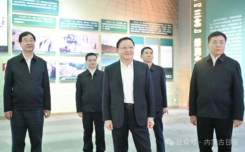 10月7日,自治区党委书记、人大常委会党组书记王伟中在内蒙古展览馆参观“绿色长城 生态奇迹——内蒙古防沙治沙和‘三北’工程攻坚战”主题展。草原云·内蒙古新闻网记者马建兵 摄