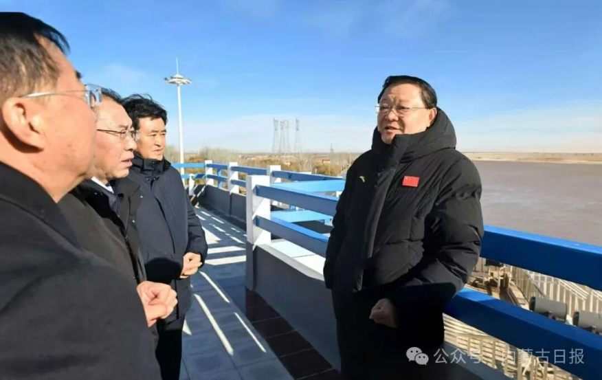 11月19日,自治区党委书记王伟中考察黄河三盛公水利枢纽工程建设运行等情况。草原云·内蒙古新闻网记者 马建兵 摄