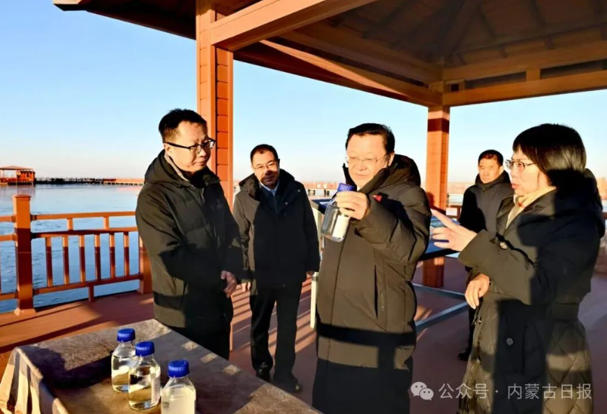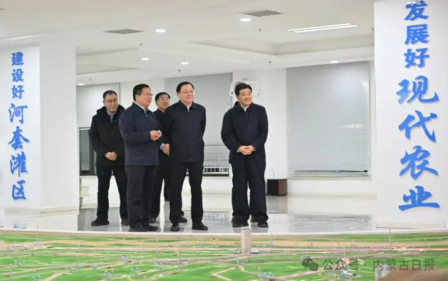 王伟中对河套灌区灌溉和节水工作十分关心,认真听取黄河三盛公水利枢纽工程、河套灌区水量信息化监测中心建设运行等情况介绍。他说,黄河是中华民族的母亲河,我们必须肩负起保护黄河的重任。要严格落实“四水四定”原则,加强水资源精准调配,科学谋划实施“十五五”重大水利项目,完善水沙调控机制,健全防汛防凌等减灾体系,实现水安全有效保障、水资源高效利用、水生态明显改善。乌梁素海是黄河流域最大的湖泊湿地,王伟中在这里实地察看生态环境综合治理情况,强调要保持定力、科学治理、系统施策,以更加有力的举措守护好这颗“塞外明珠”。在乌梁素海南岸现代农业示范园区,王伟中与相关负责同志深入交流,要求大力创新和推广农业节水灌溉技术,着力提升种植效益,更好发挥示范带动作用。