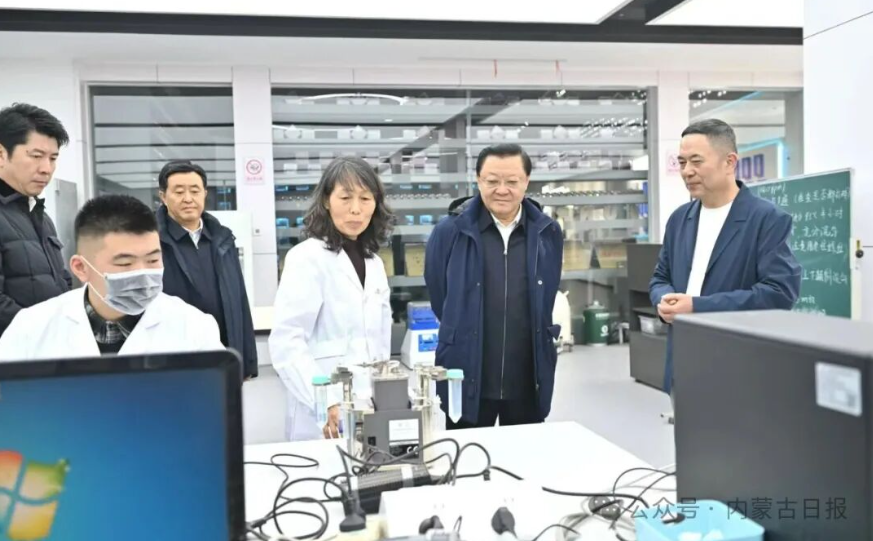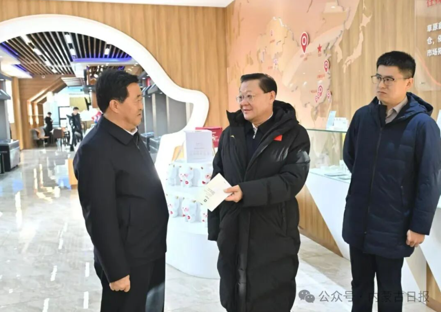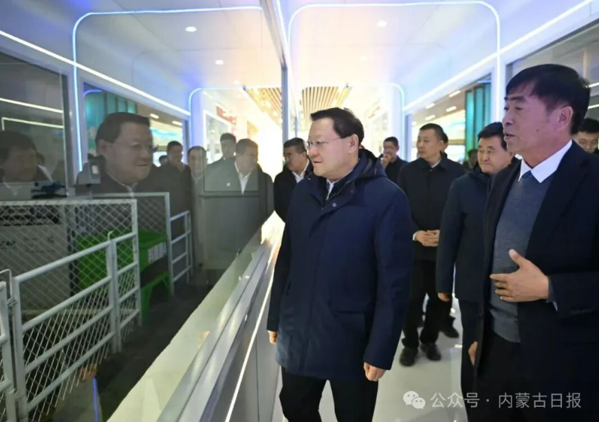 11月19日,自治区党委书记王伟中走进富川养殖科技公司,认真了解肉羊产业养殖、加工、销售等情况。草原云·内蒙古新闻网记者 马建兵 摄