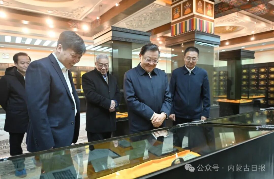 初冬的内蒙古大学校园,薄雪覆盖、朝气涌动。在省部共建草原家畜生殖调控与繁育国家重点实验室、功能介孔材料实验室,王伟中认真听取生物育种、高寒地区电池储能系统研发等进展情况介绍,与科研人员深入交流,关切询问相关技术市场化应用前景。他说,内蒙古推进科技创新,要坚持有所为有所不为,聚焦特色产业和优势领域脚踏实地地干,一定大有作为。希望内蒙古大学在“双一流”建设中强化使命担当,紧扣生物育种、草业乳业、储能等优势特色学科,沉下心来攻克关键核心技术,努力取得更多成果。要坚持以科技创新需求为牵引,主动与科研院所、创新平台、头部企业联手,加大科研设施开放共享力度,引导更多有实力的企业投入研发,推动更多科研成果从实验室走向生产线。要广开进贤之路、广纳天下英才,做好筑巢引才、以才引才、为才搭台工作,确保人才引进来、留得住、用得好。在图书馆、蒙古文古籍文献展阅室,王伟中仔细察看馆藏文献,详细询问图书文献资源建设、研究开发等工作,叮嘱有关部门要牢记习近平总书记殷切嘱托,以铸牢中华民族共同体意识为主线,切实加强对蒙古文古籍的搜集、整理与保护,挖掘弘扬蕴含其中的民族团结进步思想内涵,引导各族人民牢固树立“四个与共”理念。