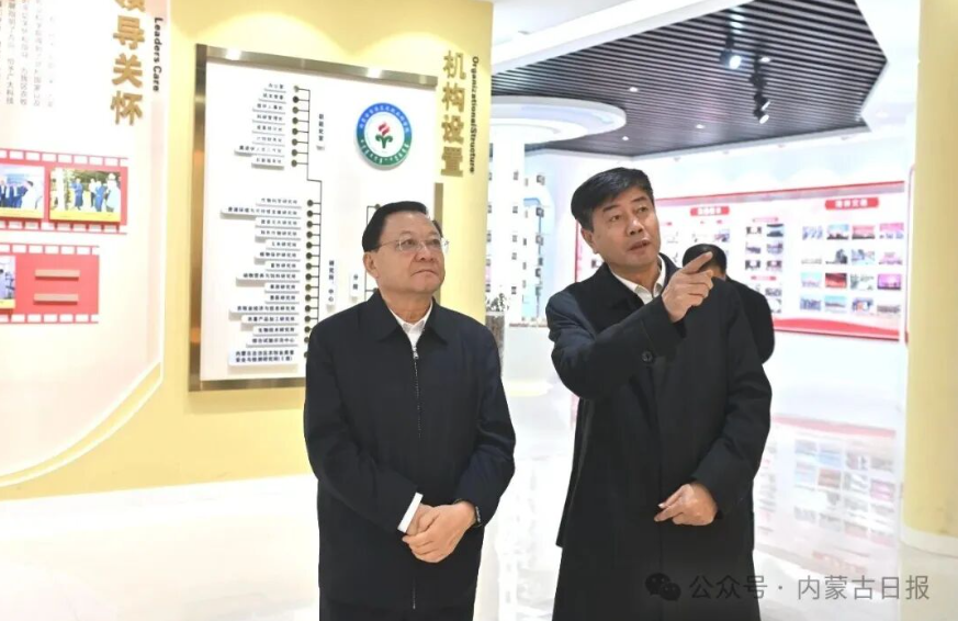 12月16日,自治区党委书记王伟中在院史展览厅了解农科院发展历程。草原云·内蒙古新闻网记者 马建兵 摄