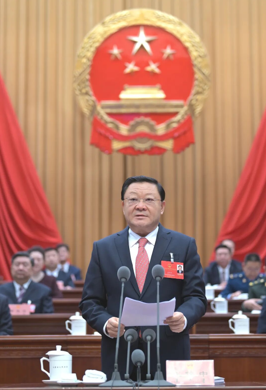 2月4日上午,自治区人民政府主席包钢向大会作政府工作报告。草原云·内蒙古新闻网记者 韩卿立 摄