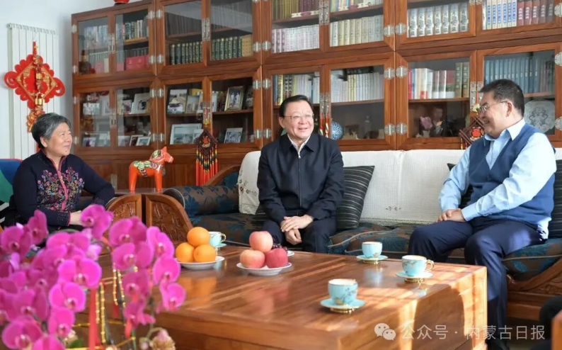 2月11日上午,自治区党委书记、人大常委会主任王伟中在呼和浩特看望慰问正省级退休干部任亚平,向他致以新春祝福和诚挚问候。草原云·内蒙古新闻网记者 马建兵 摄