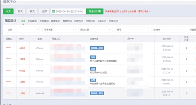 在后台的截图中,记者看到系统还能显示访客的手机操作系统、访客来源、用户IP和访问时间。