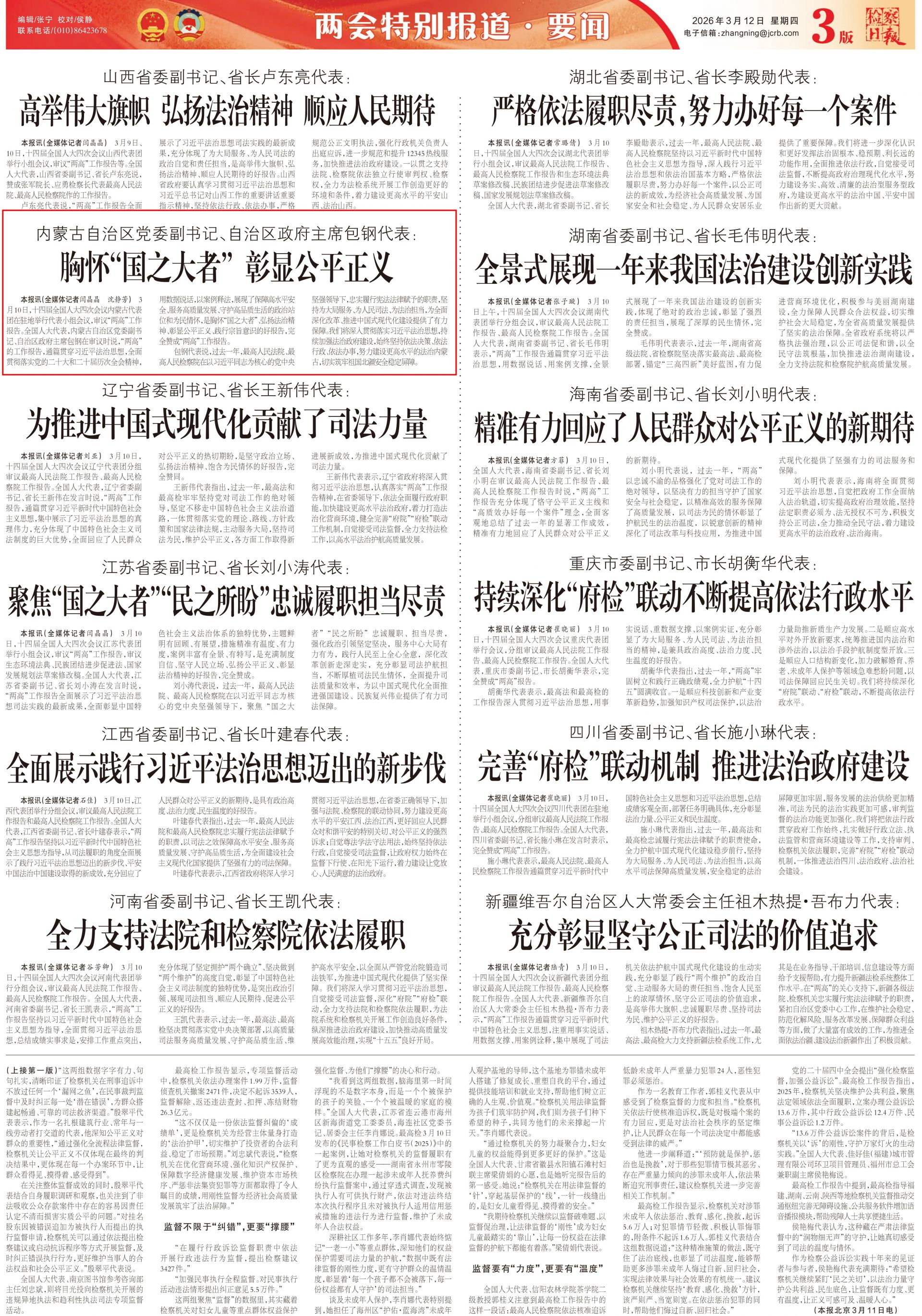 2026年3月11日《检察日报》第3版刊发了《内蒙古自治区党委副书记、自治区政府主席包钢代表: 胸怀“国之大者” 彰显公平正义 》的文章,报道了十四届全国人大四次会议内蒙古代表团在驻地举行代表小组会议,审议“两高”工作报告。全国人大代表,内蒙古自治区党委副书记、自治区政府主席包钢在审议时说,“两高”的工作报告,通篇贯穿习近平法治思想,全面贯彻落实党的二十大和二十届历次全会精神,用数据说话,以案例释法,展现了保障高水平安全、服务高质量发展、守护高品质生活的政治站位和为民情怀,是胸怀“国之大者”、弘扬法治精神、彰显公平正义、践行宗旨意识的好报告,完全赞成“两高”工作报告。