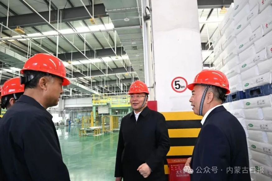 4月13日,包钢在阿拉善高新区中盐内蒙古化工股份有限公司了解精细化工产品生产情况。草原云·内蒙古新闻网记者 韩卿立 摄