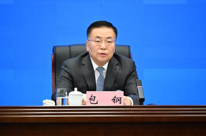 4月21日上午,开局起步“十五五”——在新征程上奋力书写中国式现代化内蒙古新篇章专题新闻发布会上,自治区党委副书记、自治区人民政府主席包钢解读了《内蒙古自治区国民经济和社会发展第十五个五年规划纲要》。 草原云·内蒙古新闻网记者 韩卿立 摄