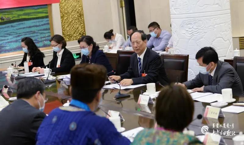1月28日下午,自治区党委书记、人大常委会主任石泰峰在自治区十三届人大四次会议锡林郭勒盟代表团,与代表共同审议《内蒙古自治区促进民族团结进步条例(草案)》。记者 袁永红 摄