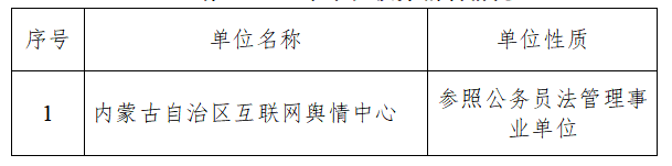 2.从决算单位构成看,纳入本单位2026年汇总预算编制范围的预算单位共计1家,具体包括:内蒙古自治区互联网舆情中心。详细情况见表: