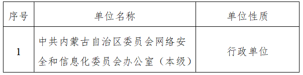 2.从预算单位构成看,纳入本单位2026年汇总预算编制范围的预算单位共计1家,具体包括:中共内蒙古自治区委员会网络安全和信息化委员会办公室(本级)。详细情况见表: